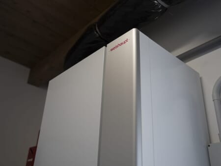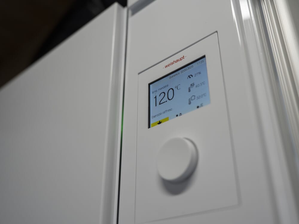 Al centro dell’impianto c’è una pompa di calore aria-acqua WEISHAUPT WSB da 12 kW, con accumulo integrato da 165 litri, progettata per garantire alte prestazioni in ogni stagione dell’anno.